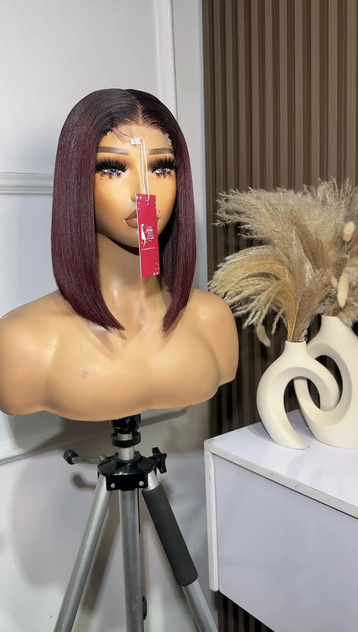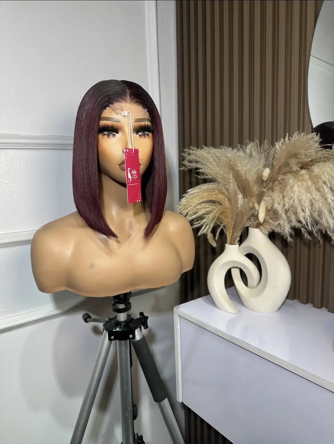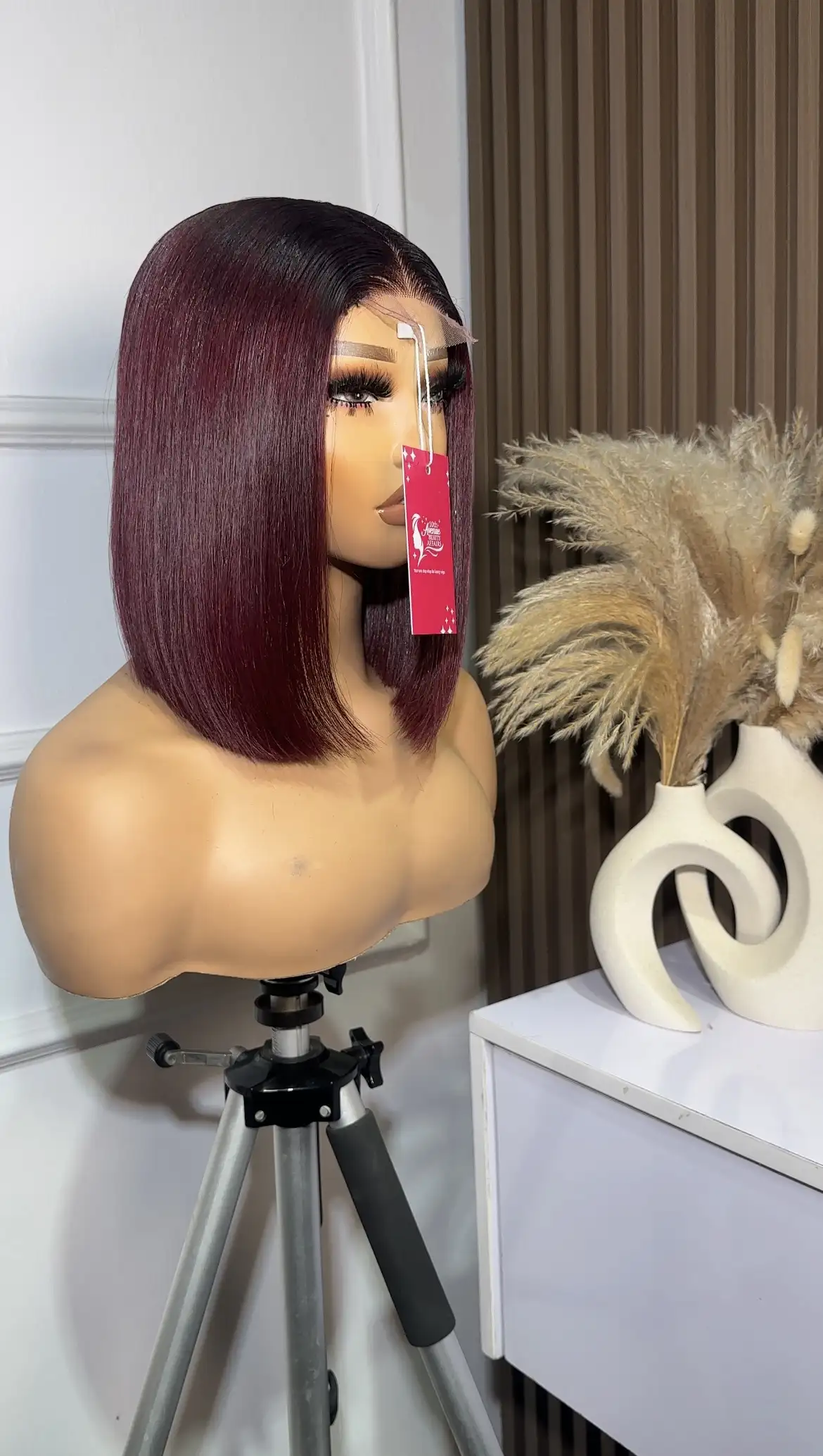 10” Burgundy Glueless Raw Baby Donor Hair, Paired With A 2 By 6 closure. Silky and thick.