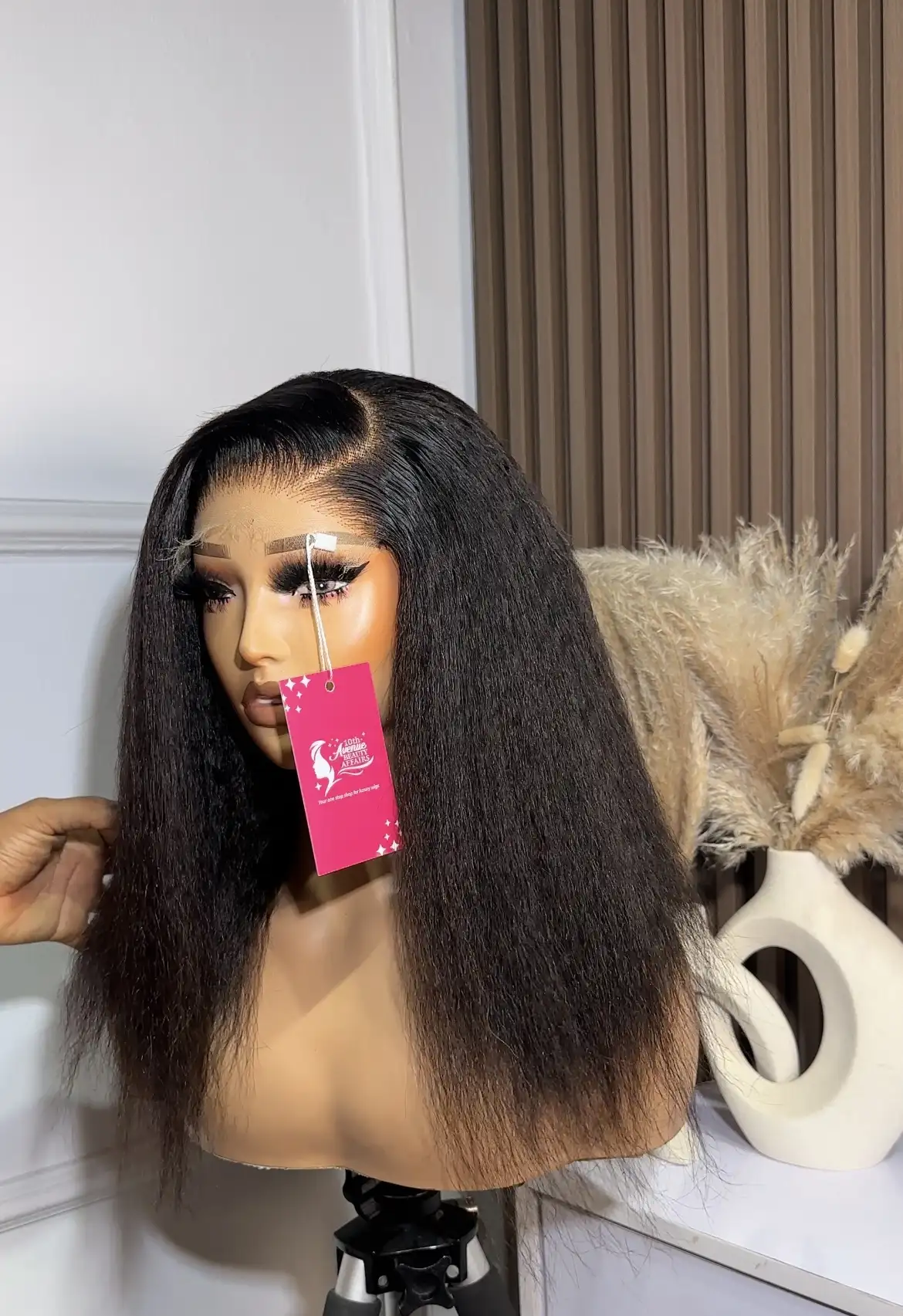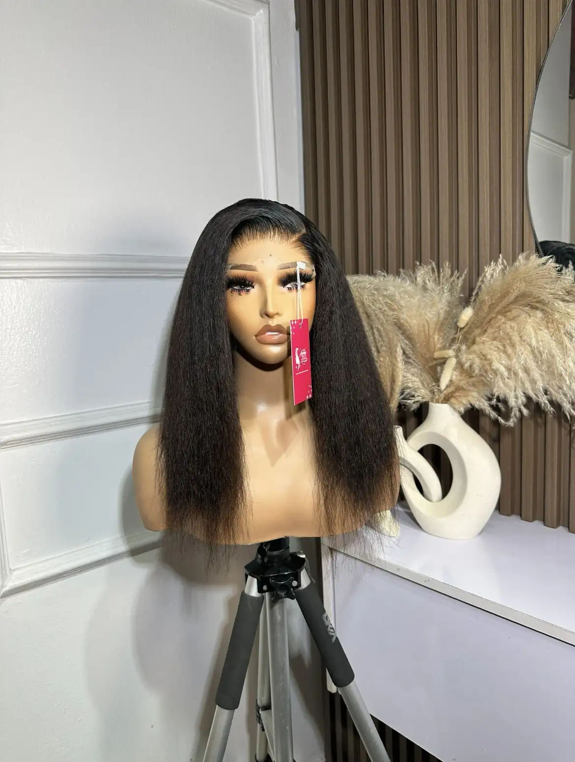 12” Kinky straight paired with a 5 by 5 HD closure.