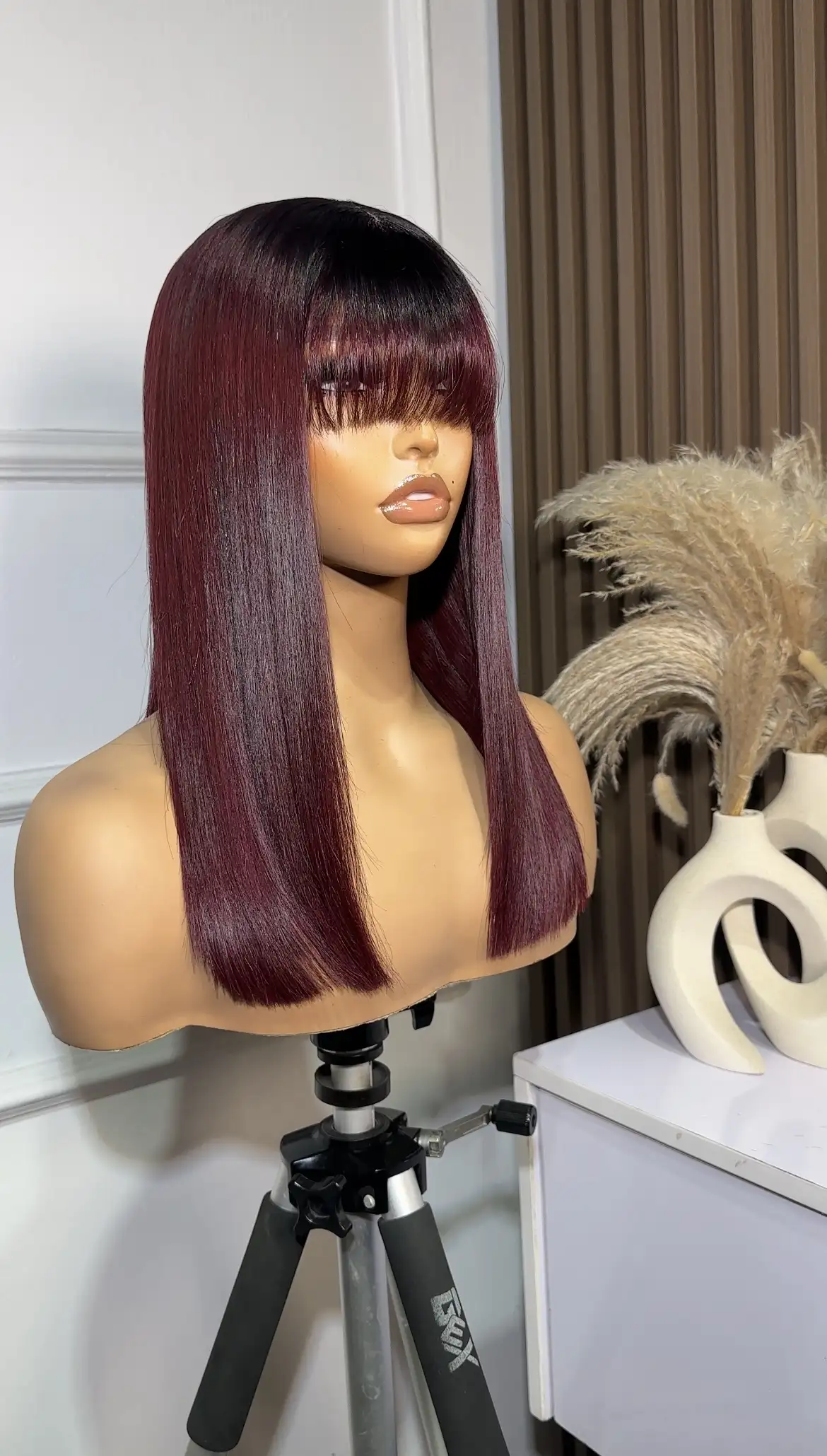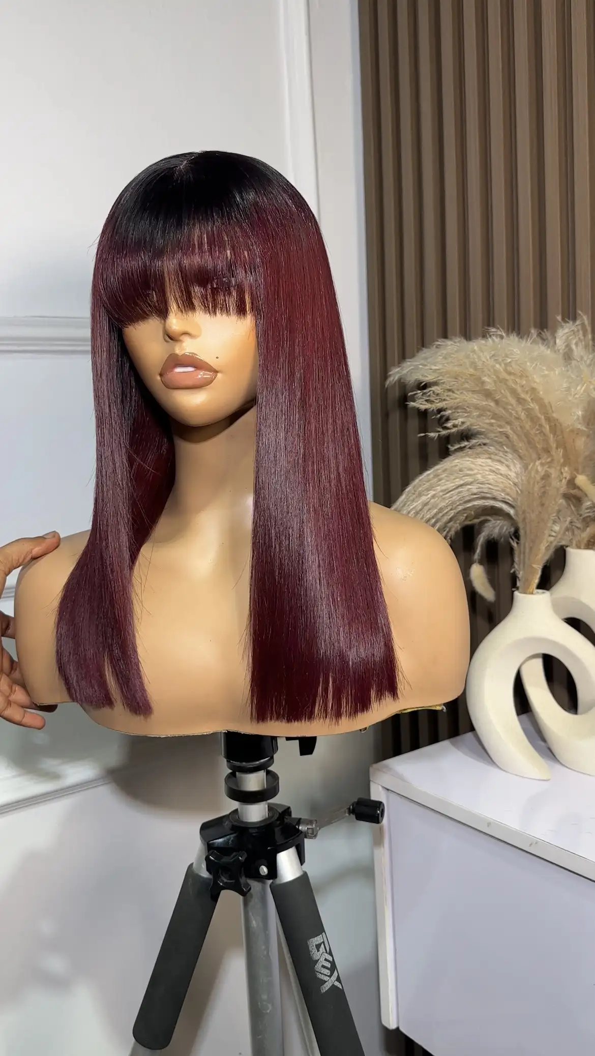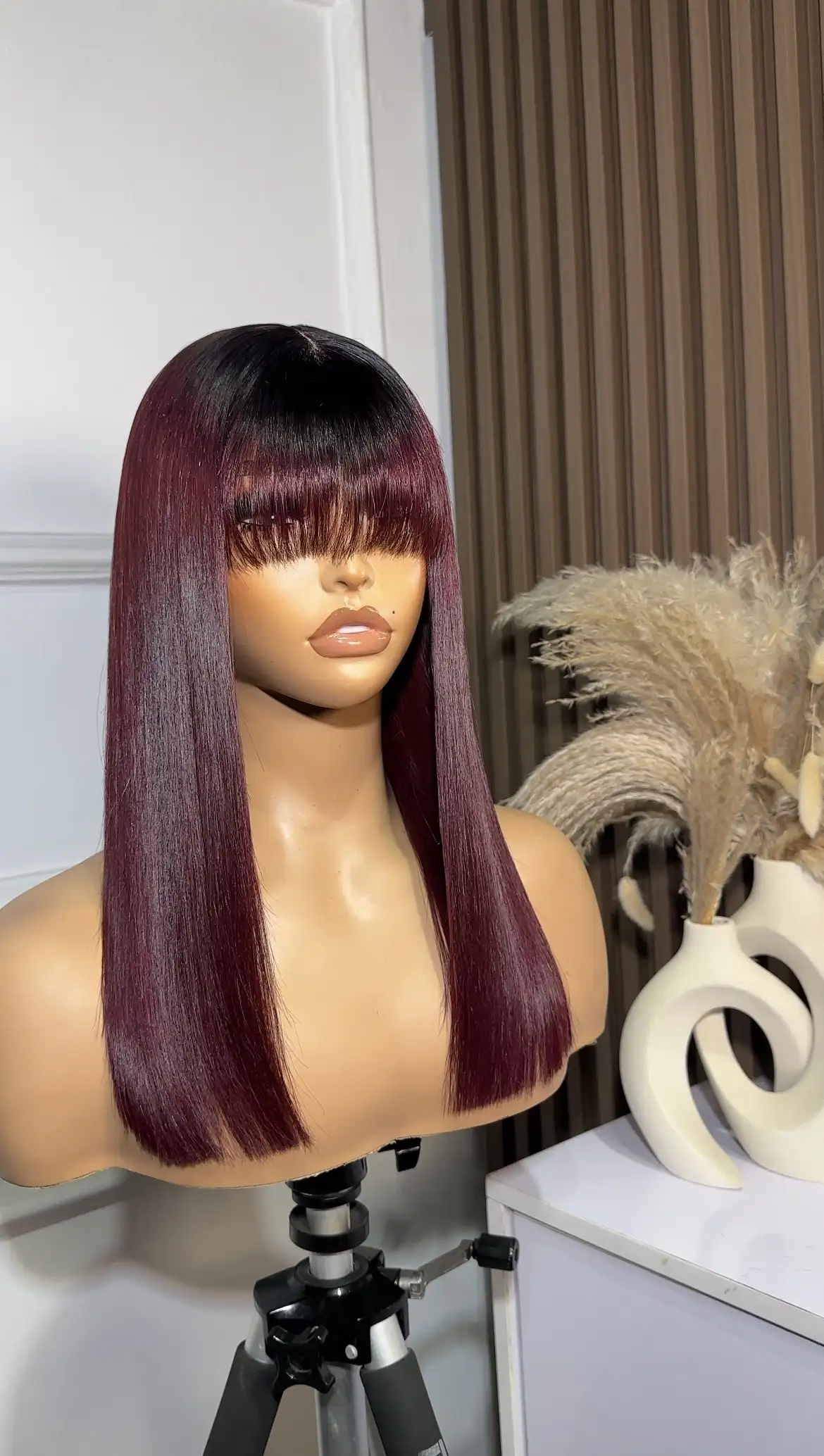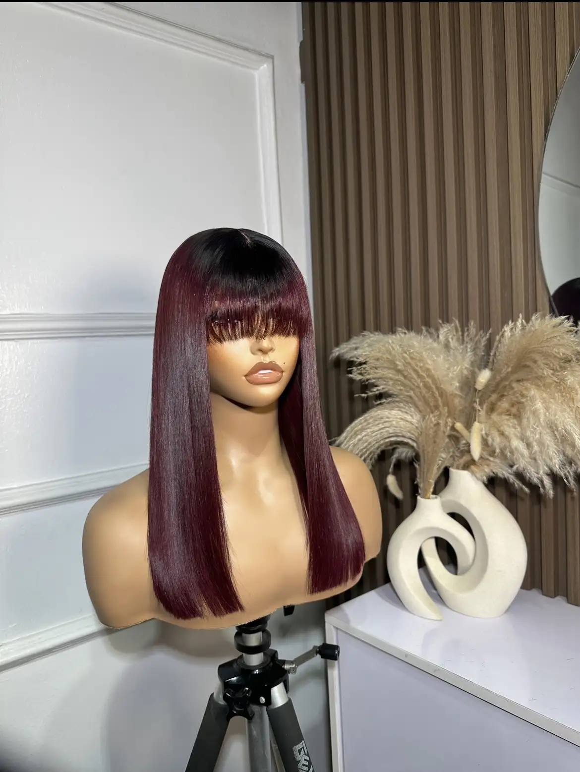 14” Single Baby Donor Burgundy Closure Fringe Wig.