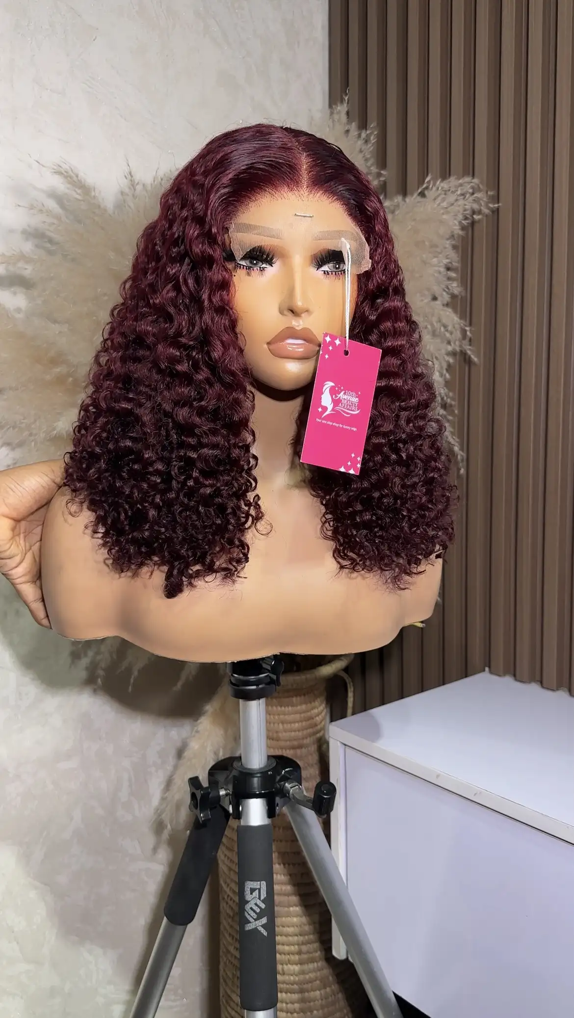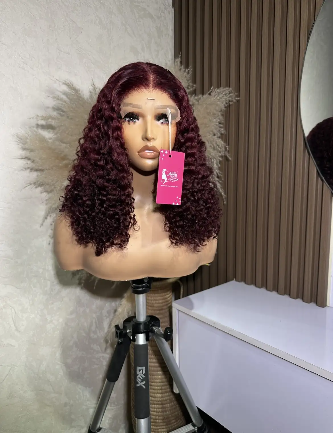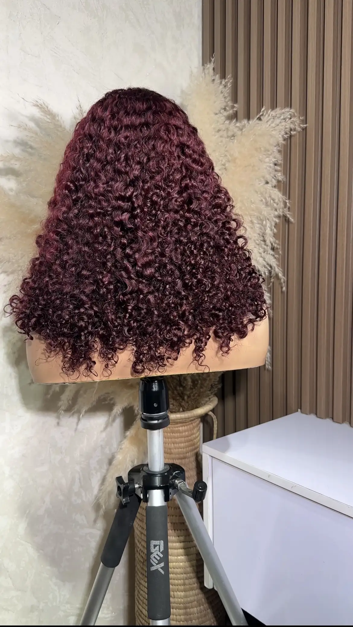 16” Pixie wine SDD wig, paired with a 5 by 5 closure. Soft and luxurious.