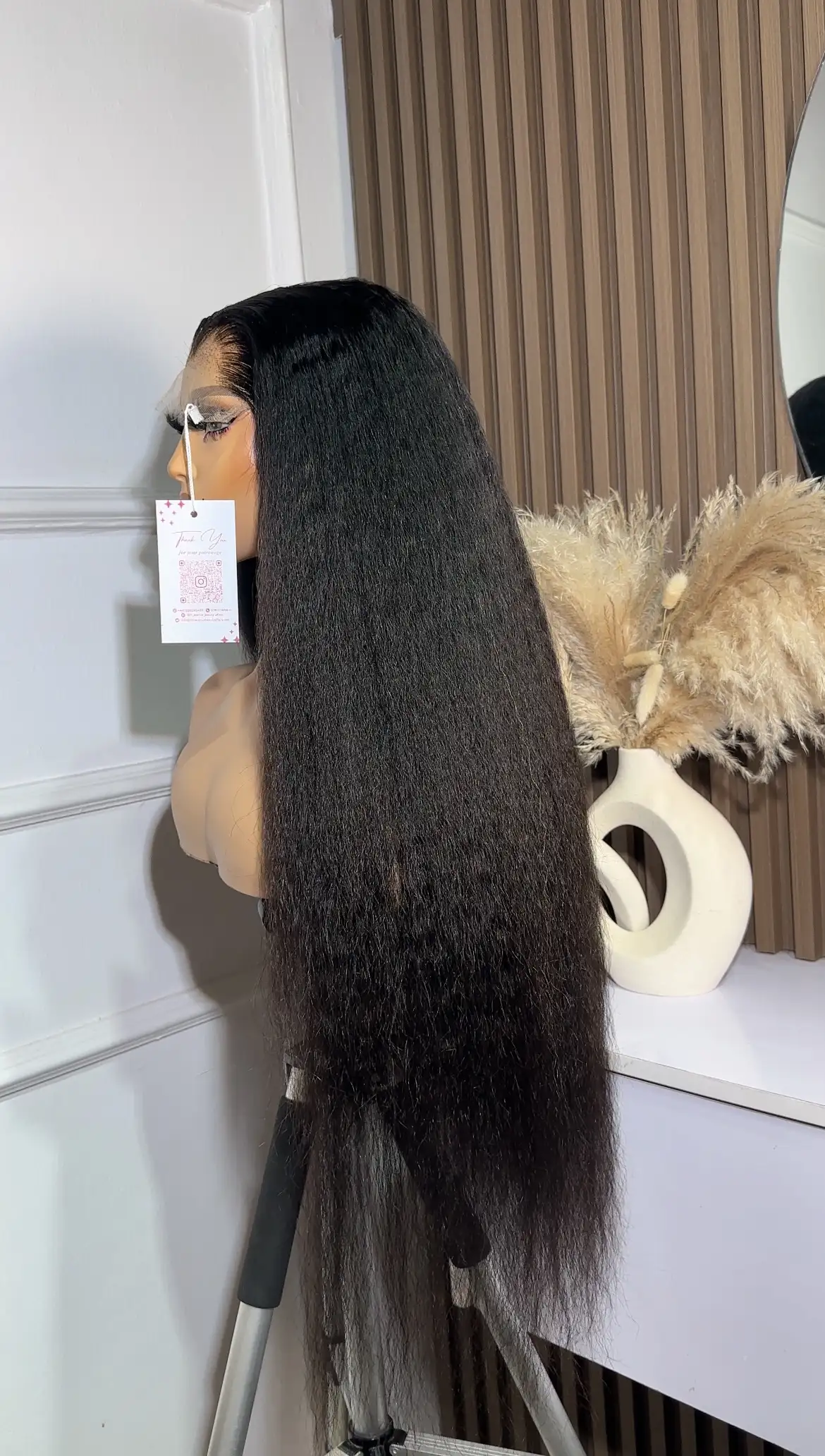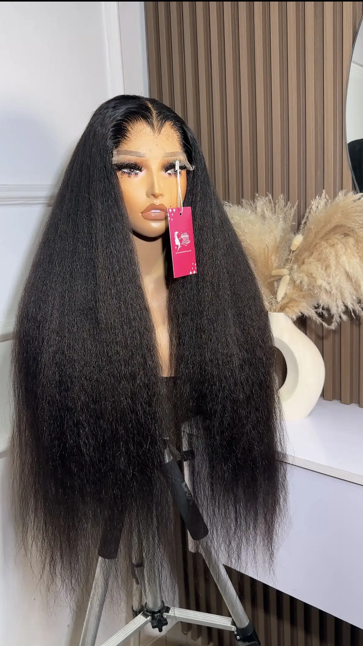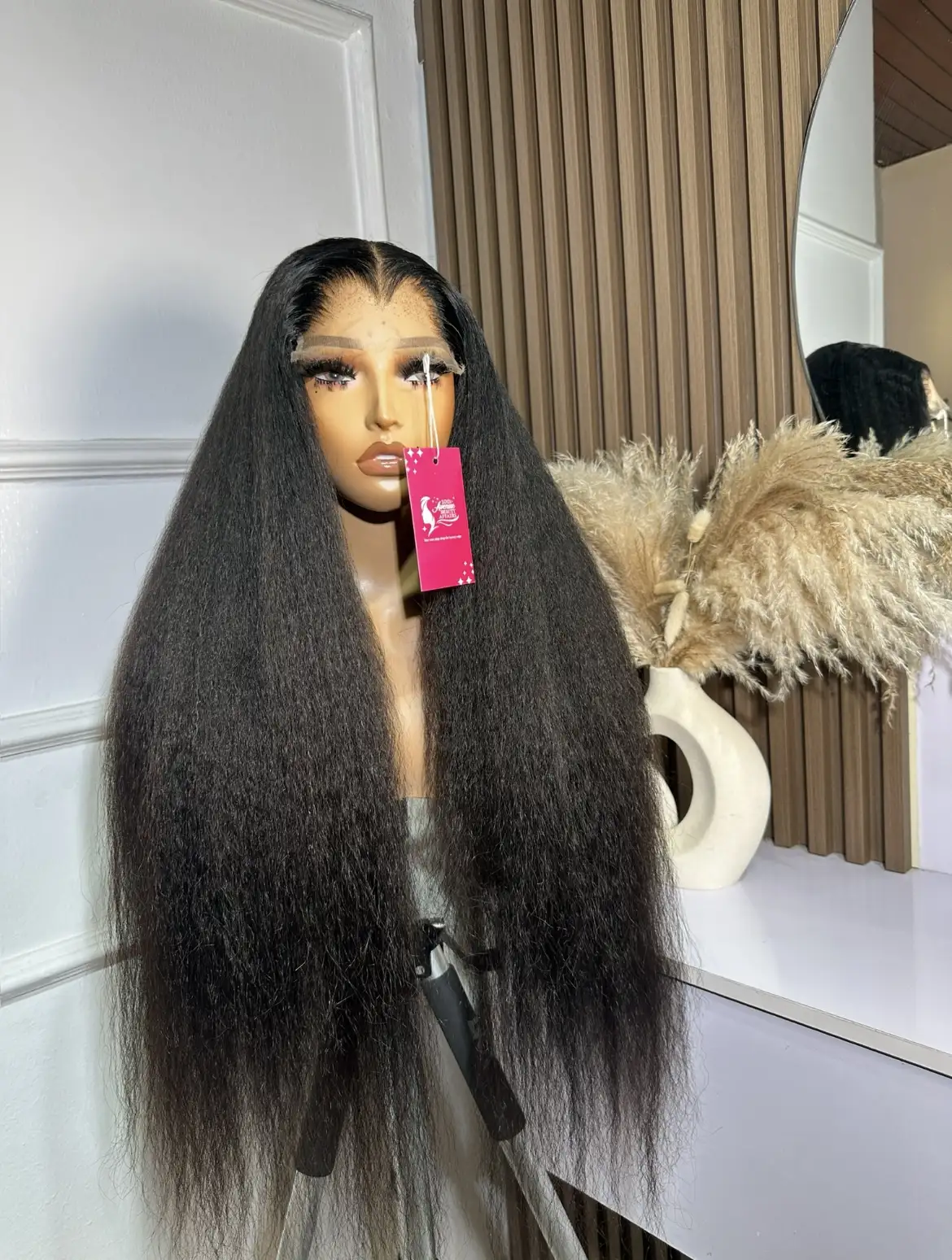 26” Kinky straight paired with a 5 by 5 HD closure. Lace plucked to be Lagos hairline.
