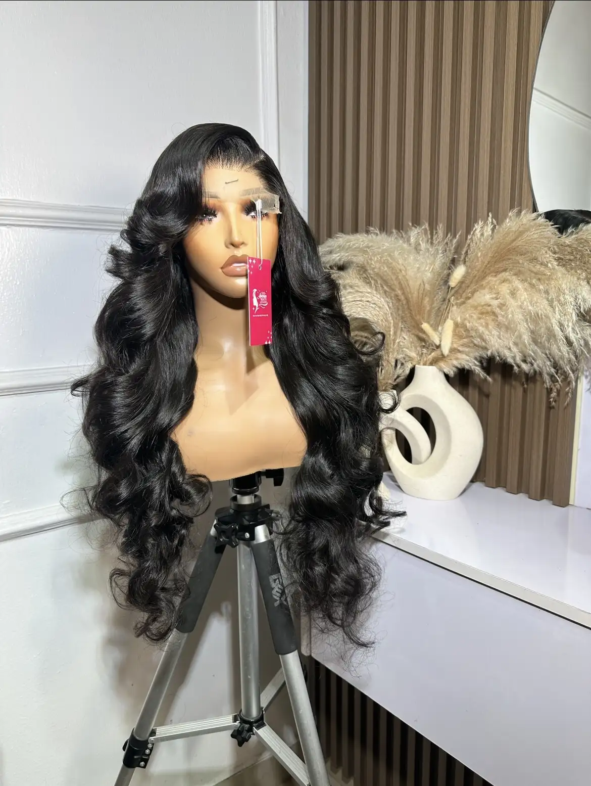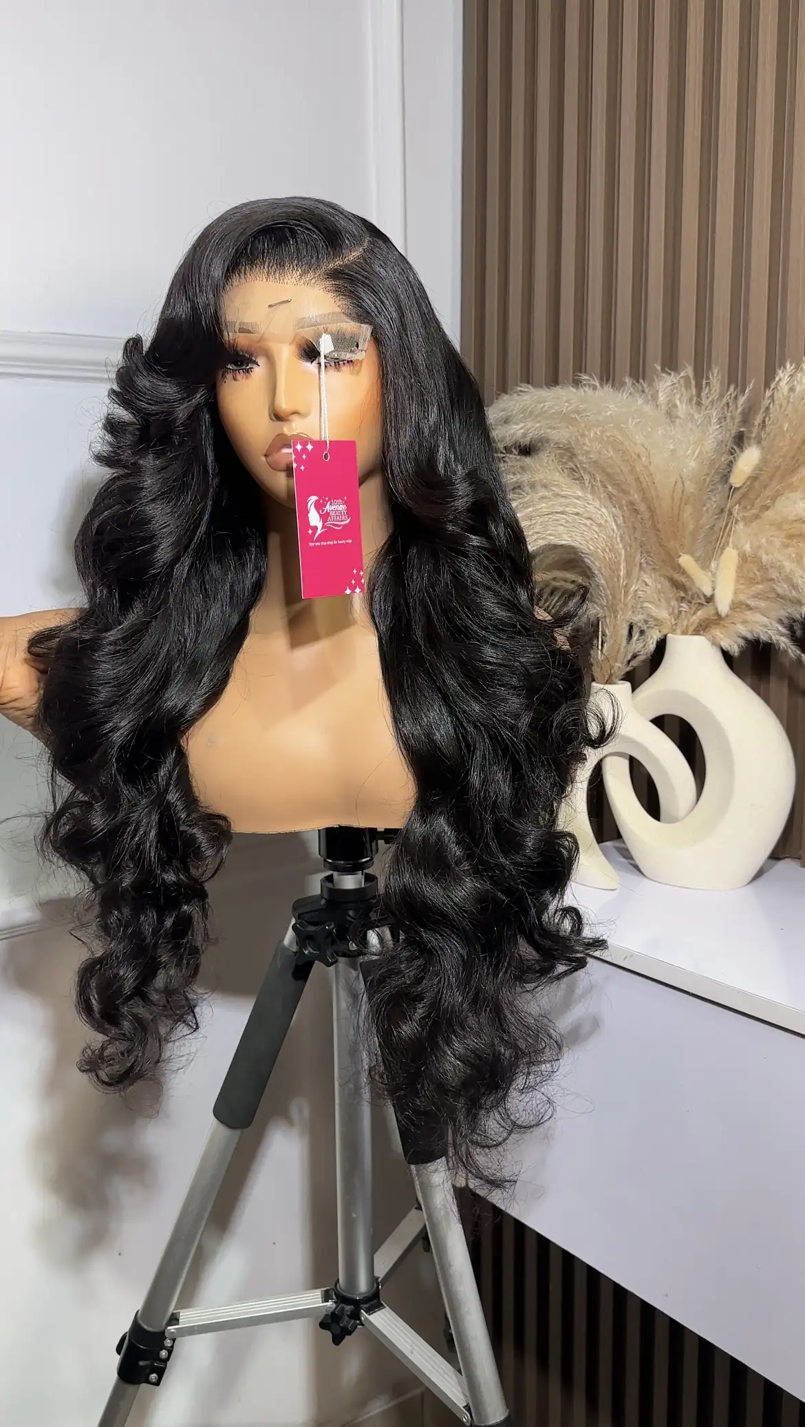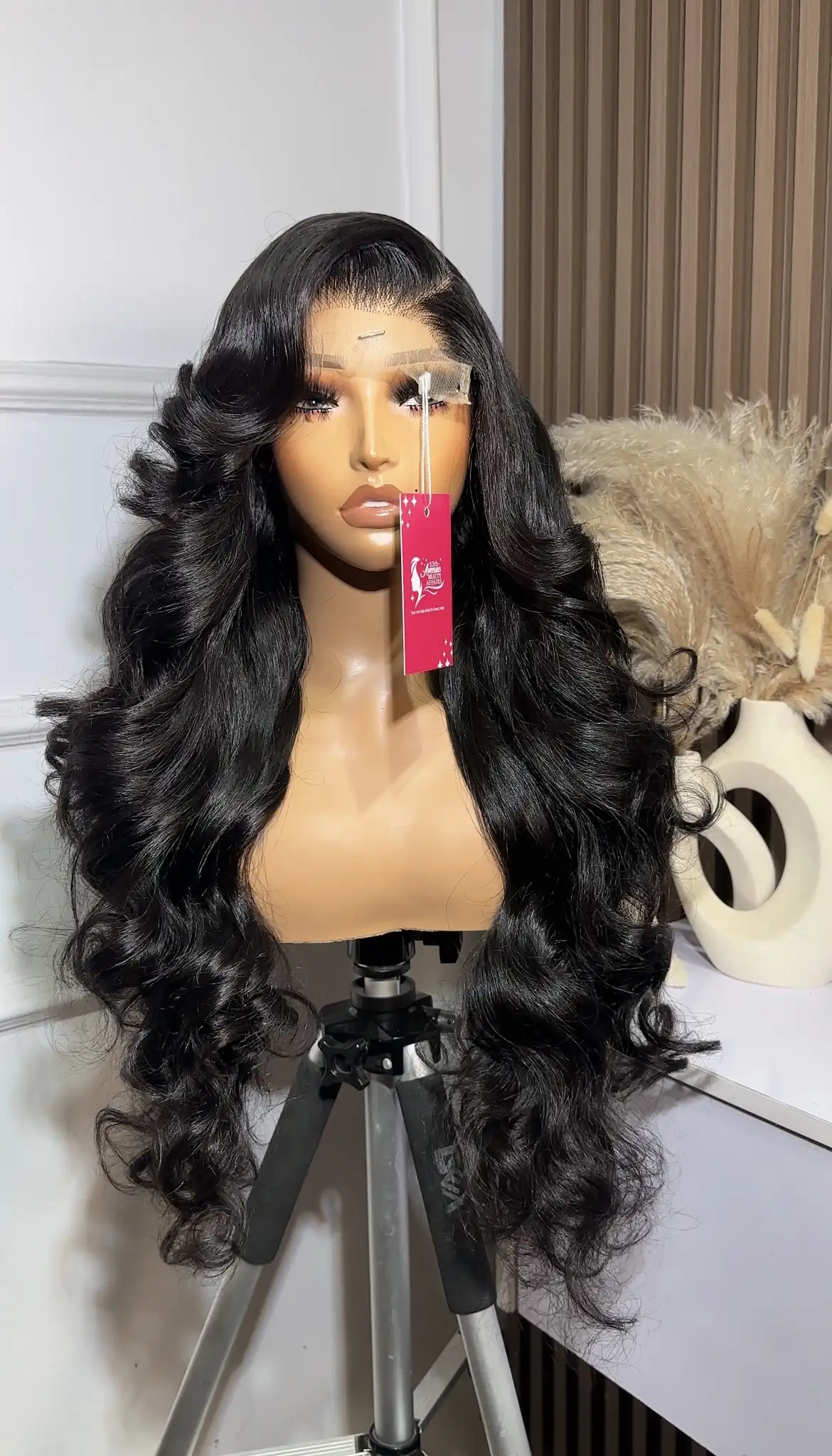 26” Wavy Layered Black wig paired with a 5 by 5 closure. Thick and luxurious.