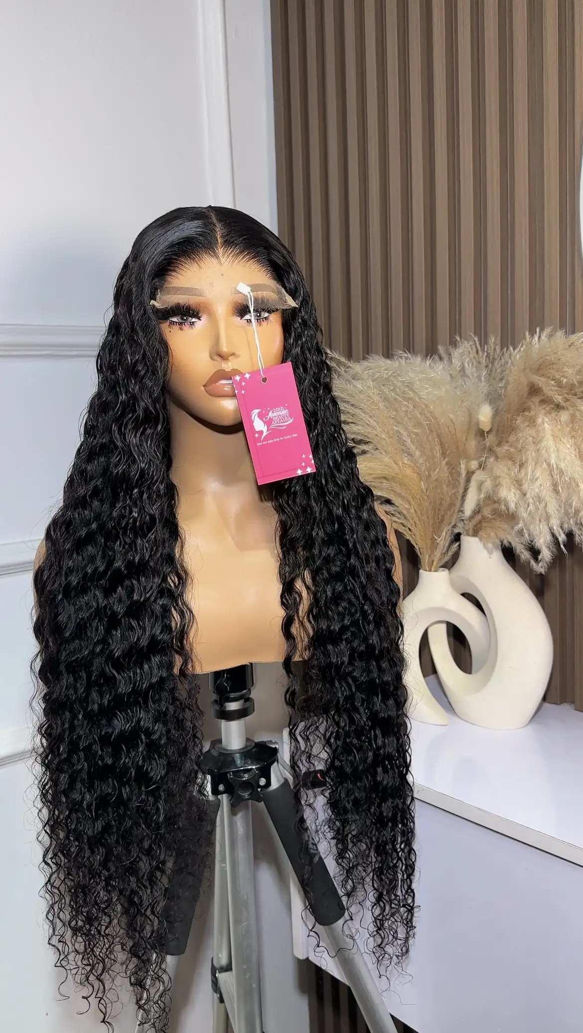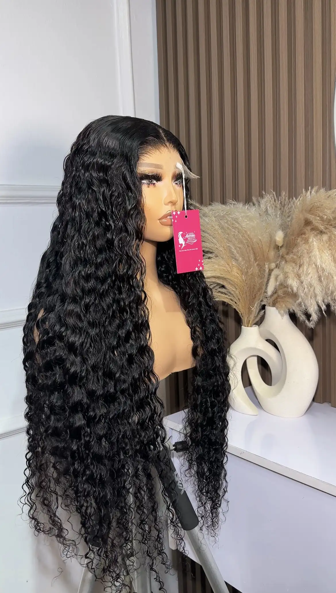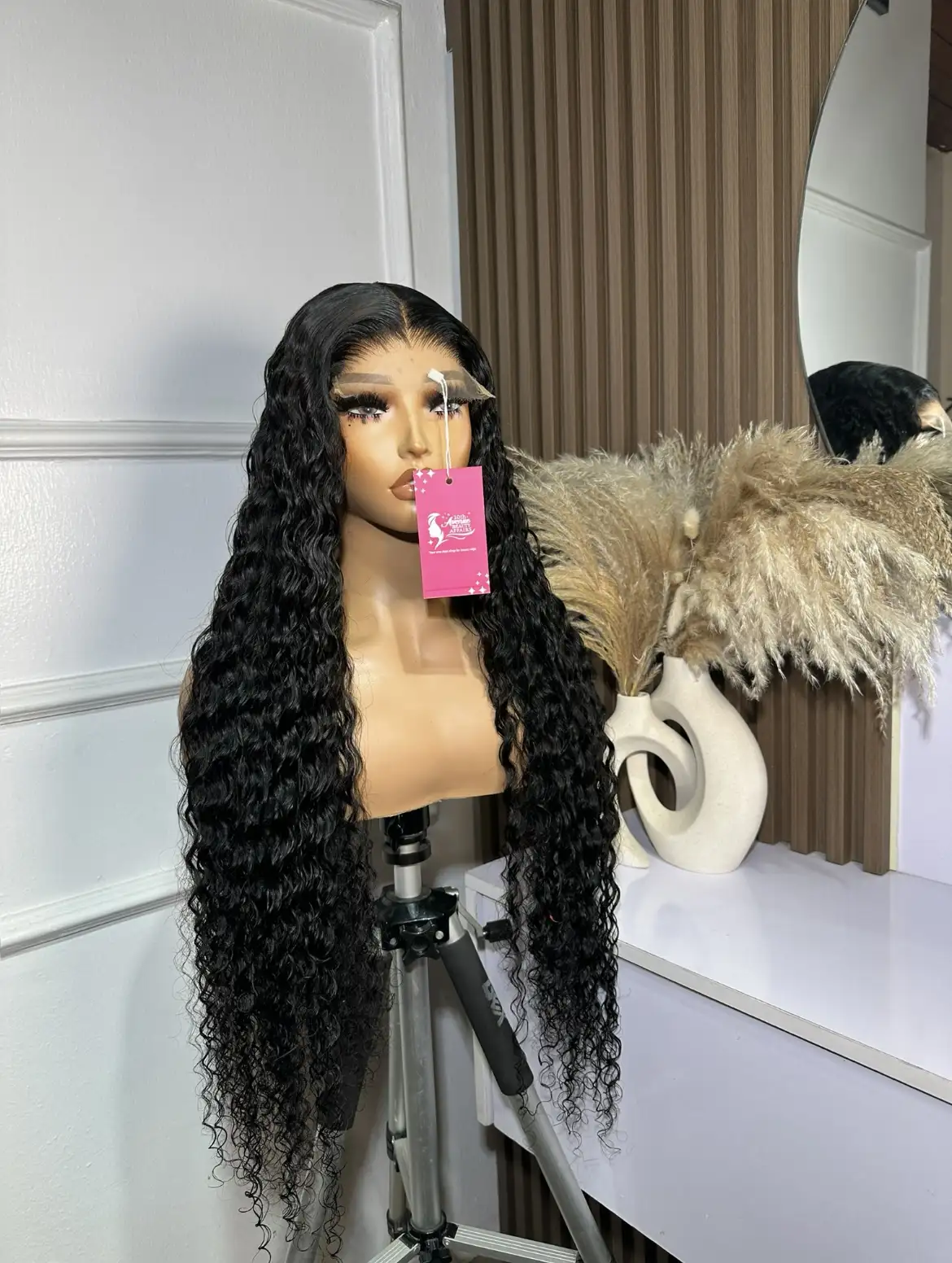 30” Black Deepwave wig paired with a 5 by 5 HD lace.