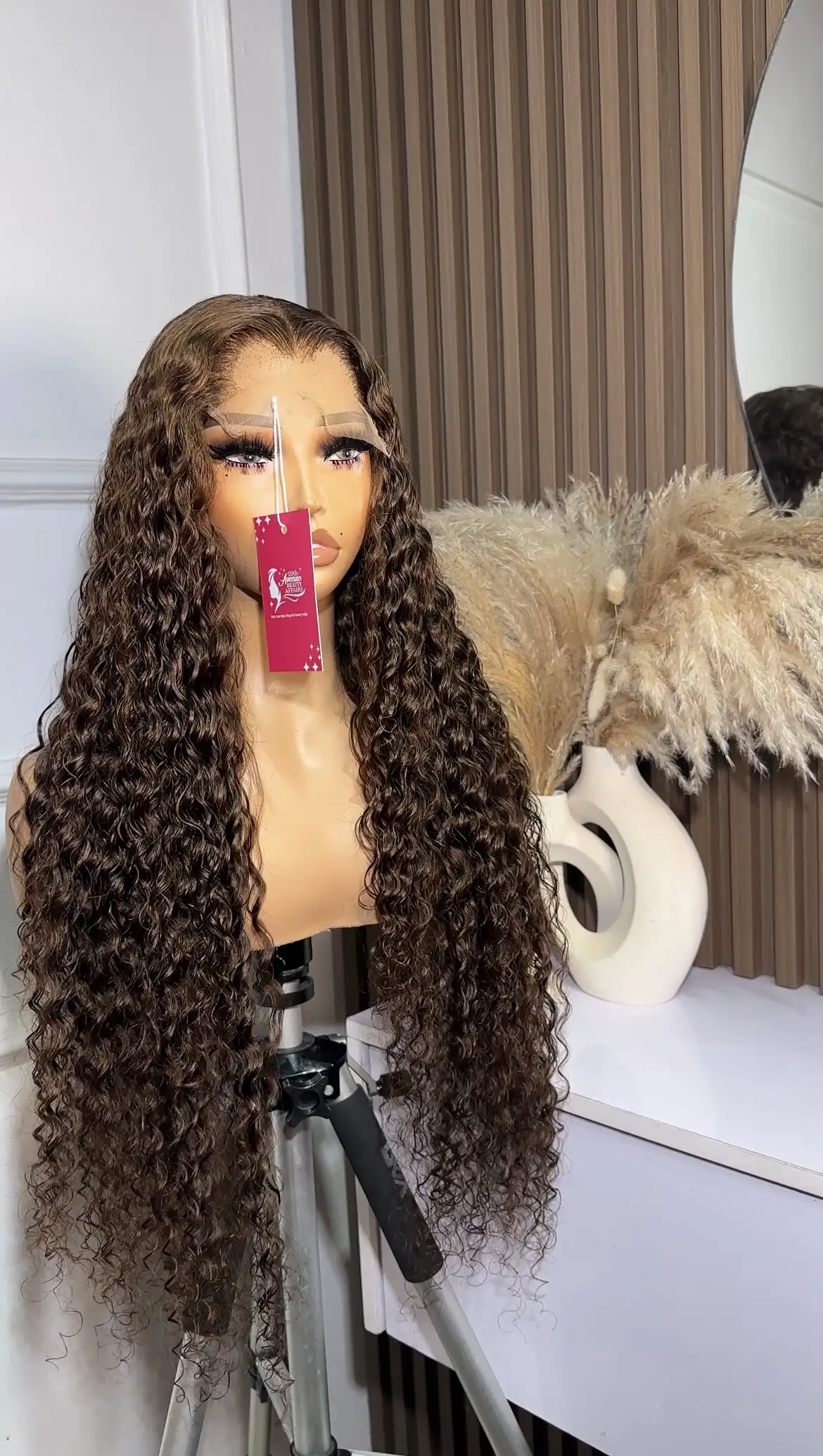 30” Brown Deepwave wig paired with a 5 by 5 Swice lace, lace plucked to be Lagos hairline.