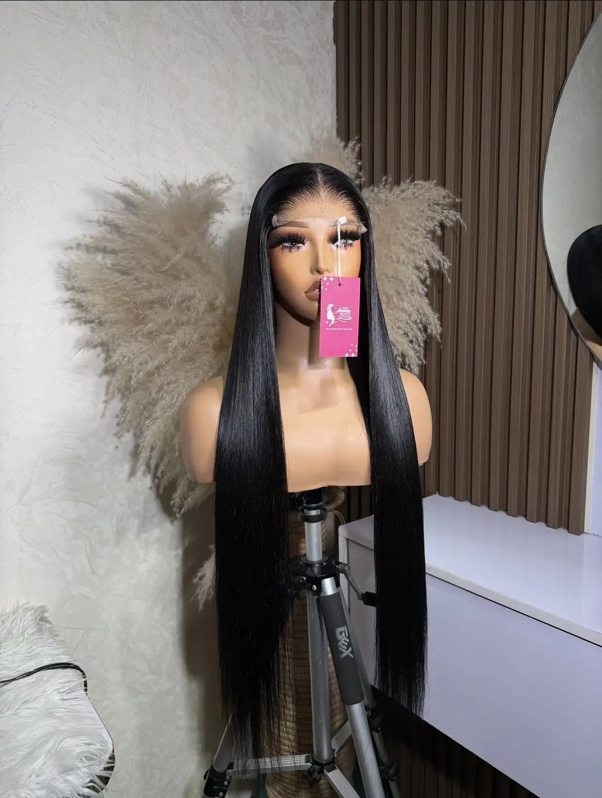 30” Raw baby thin jet black hair, paired with a 5by5 HD closure. Silky and luxurious.